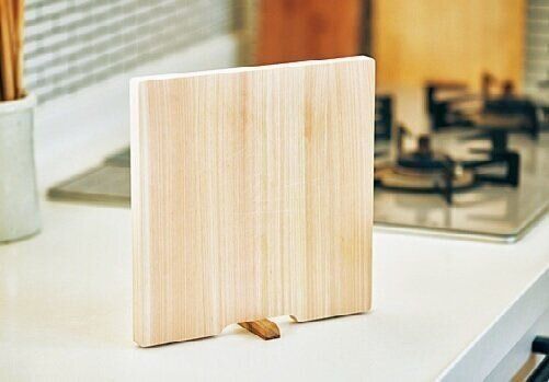 「土佐龍」のヒノキのまな板は、スタンド付きで刃当たりも抜群。「大きさ違いで購入し、用途によって使い分けています」。