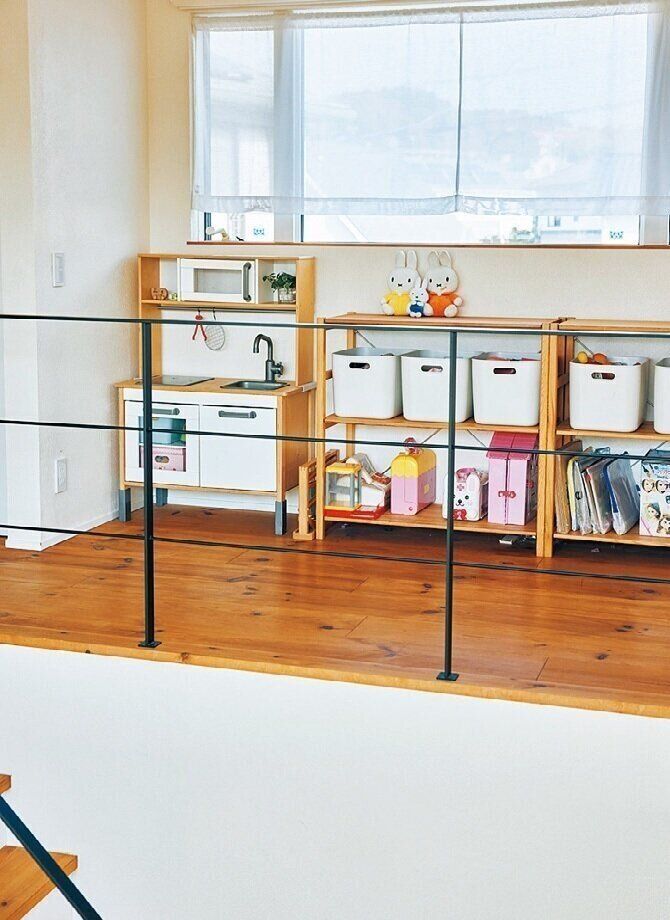 子どもたちの勉強グッズやおもちゃは、専用コーナーを作ることで、リビングに持ち込まないしくみに。
