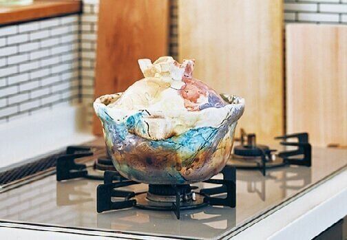 伊集院真理子さんの土鍋は、やさしい色と手びねりのおおらかさが魅力。「炊飯器よりおいしく炊けて、お手入れも簡単!」。