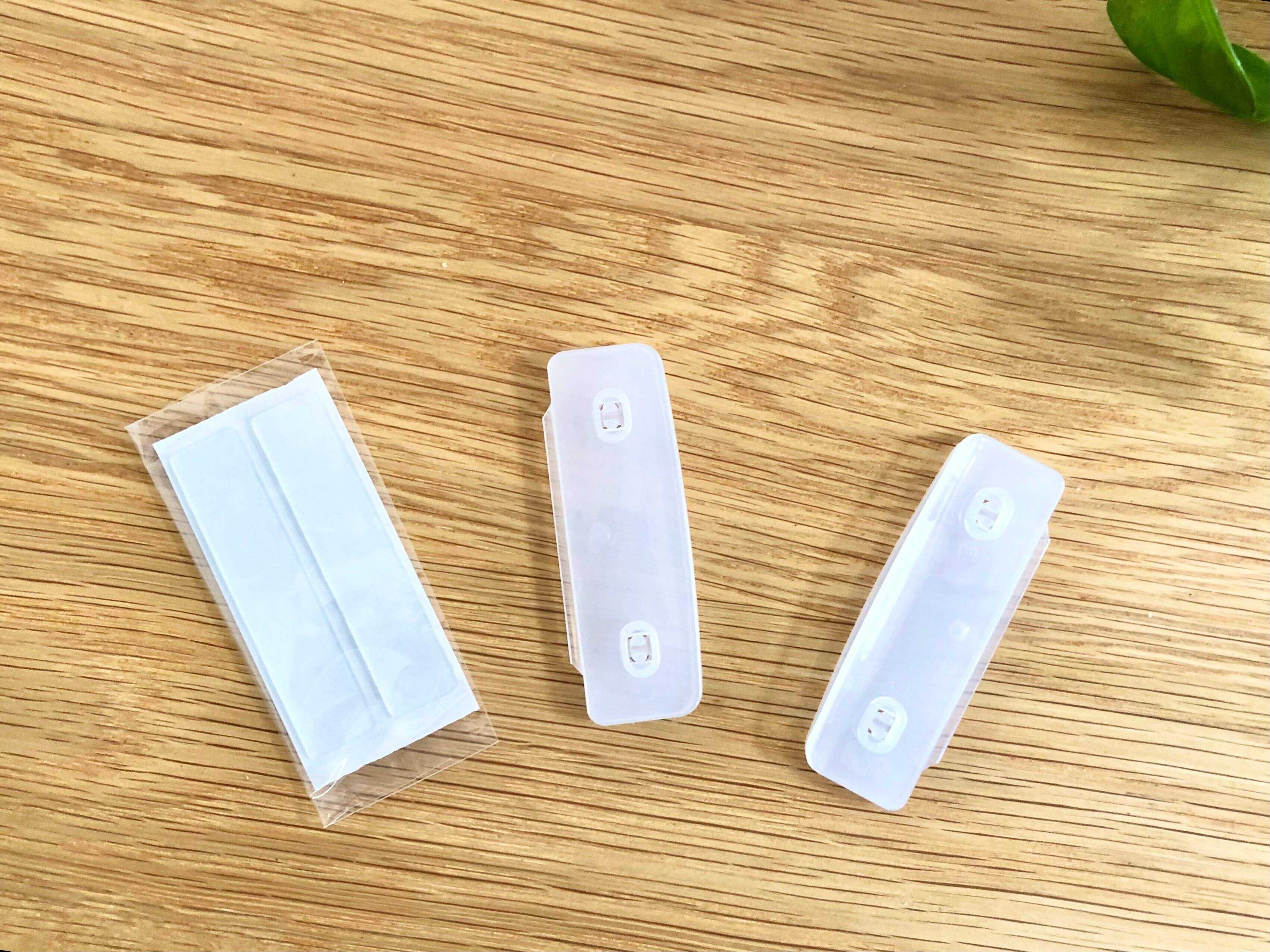 商品には、透明なクリップが2個と付属のテープがセットで入っています。