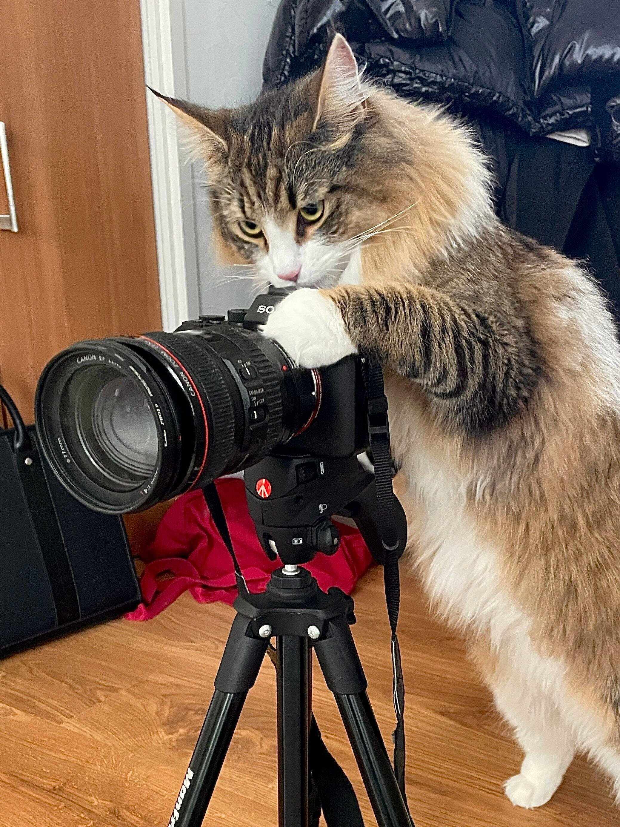 「あまりにもカメラマンすぎて、率直に面白かったです。どうやら飼い主のマネをするのが好きなようで、ふだんからエアロバイクに乗ったり、映画を熱心に鑑賞していたりするのですが、カメラも同じように撮ってみたかったのかもしれません」