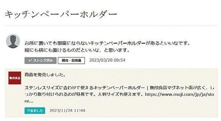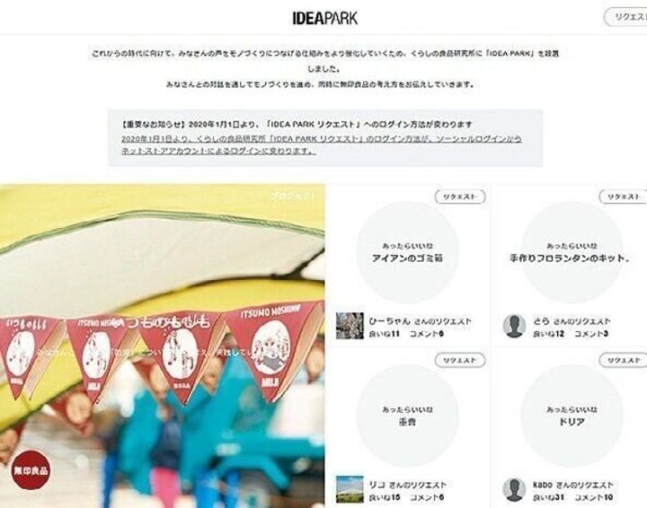無印良品に対して「こんな商品が欲しい」「ここを改良して」といった要望があるなら、「IDEA PARK」というサイトに投稿を!意見に対して「良いね」やコメントをすることも可能で、「お客様参加型の商品開発」を目指す無印良品ならではの取り組み。ここから「からだにフィットするソファ」など数々のヒット商品も誕生しているので、あなたの要望が商品になるかも!?