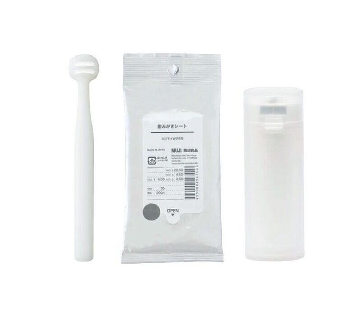 「舌用クリーナー」¥590、「歯みがきシート」(12枚)¥290、「デンタルフロス・ワックス付ペパーミントの香り」(30m・約70回)¥550