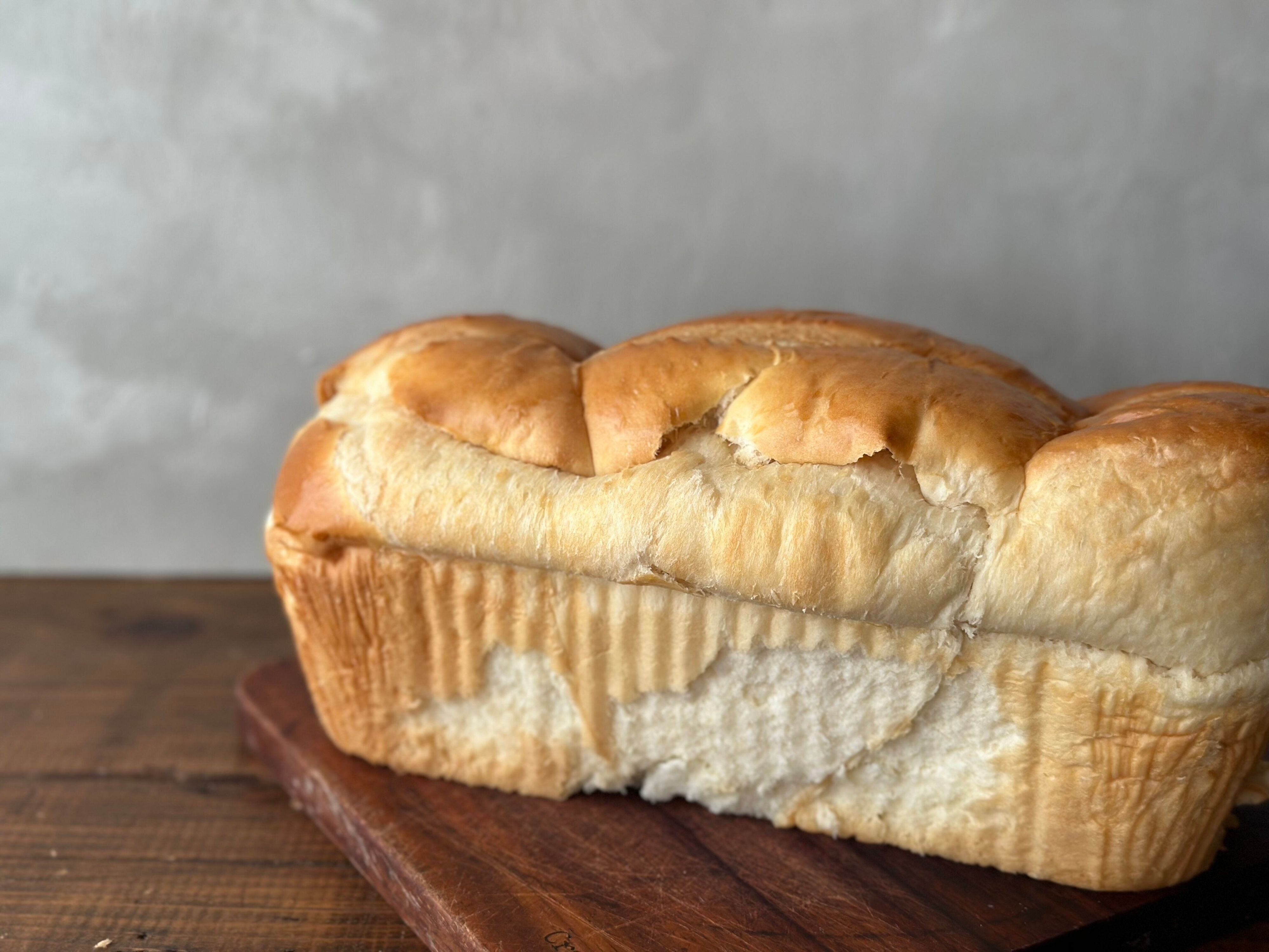 型からあふれんばかりに盛り上がったパンがとっても印象的。これまでにも、同じシリーズだと、ホテルブレッドやミルクブレッドという商品が登場してきました。今回は、ヨーグルトブレッドということで、パッケージを開けたときからヨーグルトの香りがふわっとして、今までにない風味を感じましたよ。
