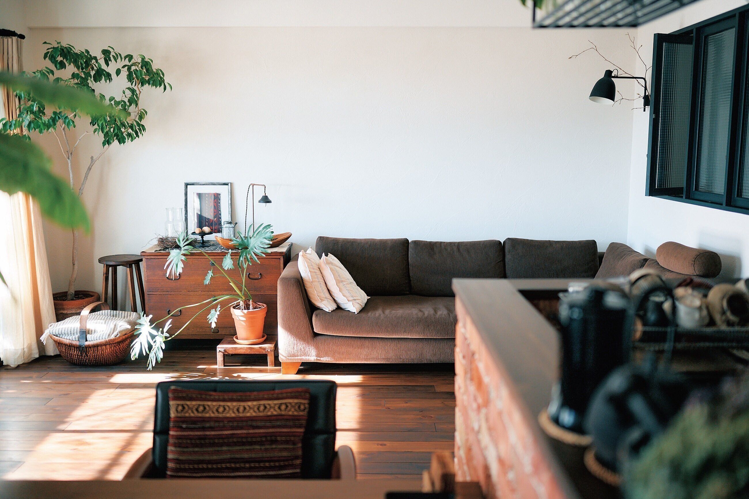 リフォームを機に、夫婦それぞれの個室を確保。リビングは、珪藻土(けいそうど)の壁、無垢(むく)材ざいの床など今まで憧れていたインテリアを実現しました。