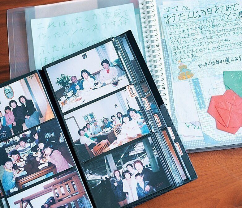 「重いアルバムは誰も見ないから」と、ピンボケや顔が切れている写真を外し、写りのいい物を厳選して手軽なポケットアルバムに移し替え。「3人の子どもそれぞれのベストアルバムができました」。