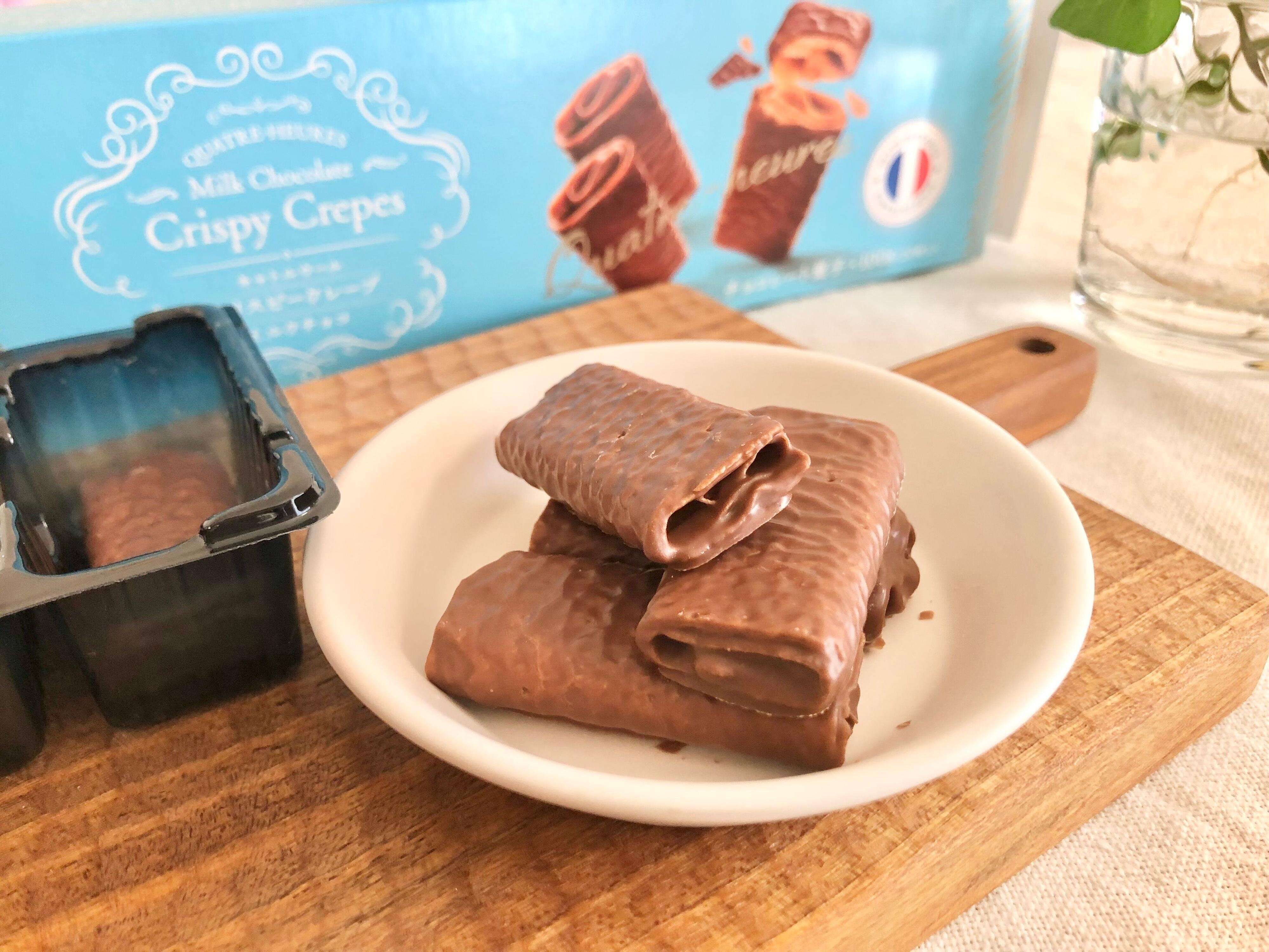 業務スーパーの「キャトルウール クリスピークレープ(ミルクチョコ)」は、サクサク食感と上品なミルクチョコレートの味わいがたまらない絶品お菓子。