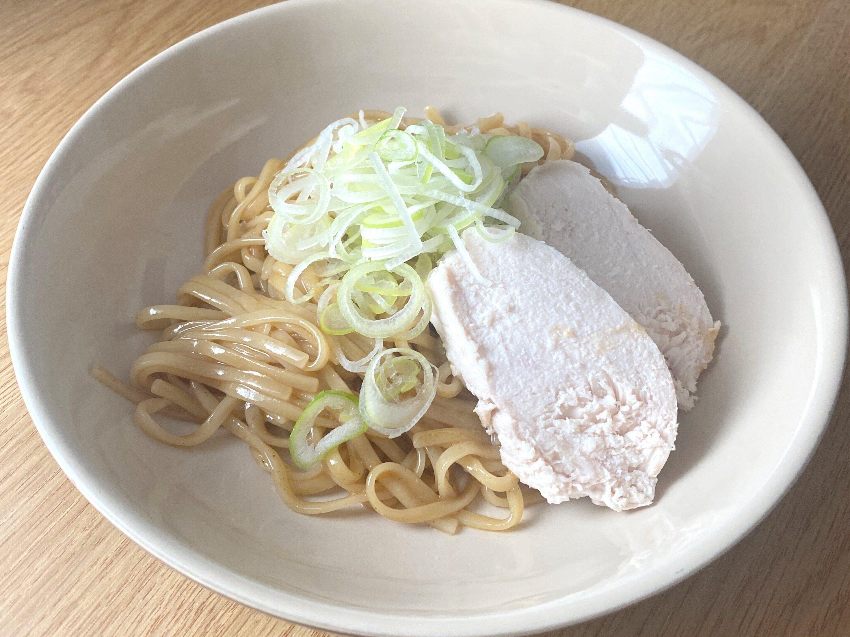 今回は、サラダチキンとネギをトッピングしましたが、パッケージには唐辛子やネギがオススメされていました。