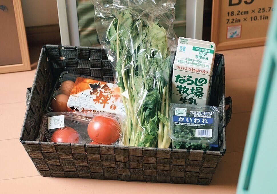 購入する食材は、「肉(または魚)、卵、牛乳、豆腐、野菜」でルーティン化。「旬の野菜は栄養価があるうえ、お買い得。3~4日で食べ切れる量しか買わないから、ムダにすることがありません」。