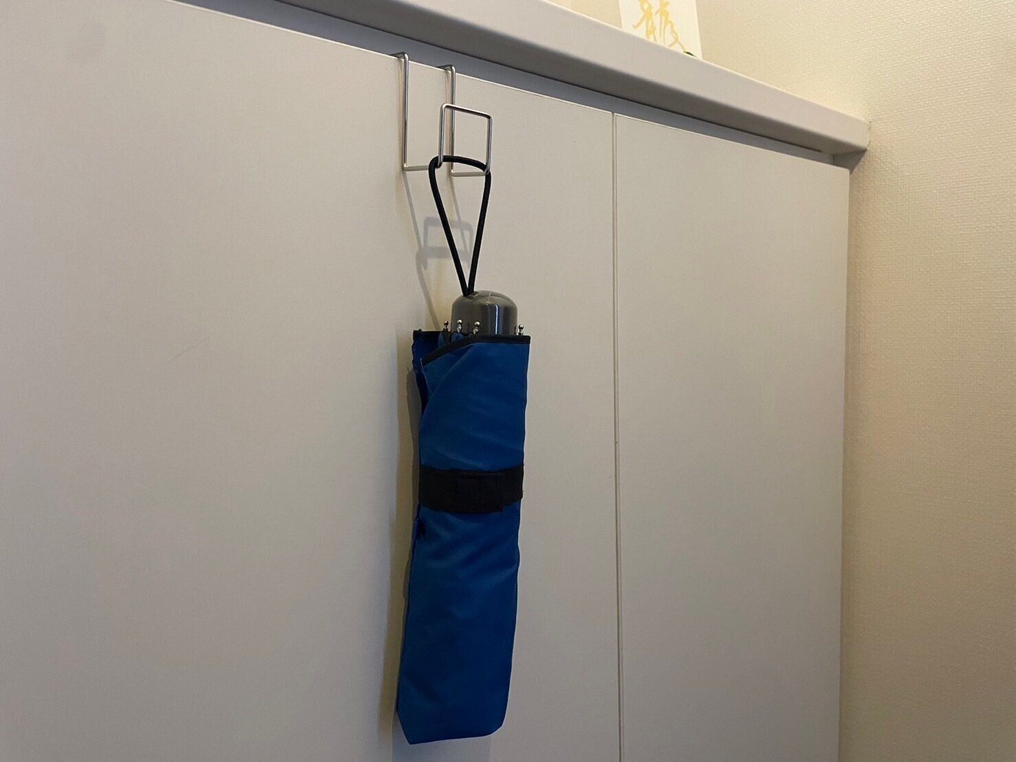 ほかには、折りたたみ傘や消臭スプレーなどをかけるのも便利。ぜひ、生活に合わせてより楽になる場所に「扉につけるフック」を使ってみてくださいね。
