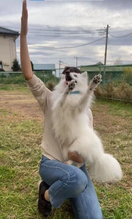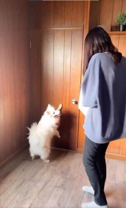 そしてまたあるときには、飼い主さんの動きをしっかりと見ながら一緒にポーズを決めるぽぽくん。こんな風に愛犬と心を通わせられたら、毎日が楽しいこと間違いなしですね。