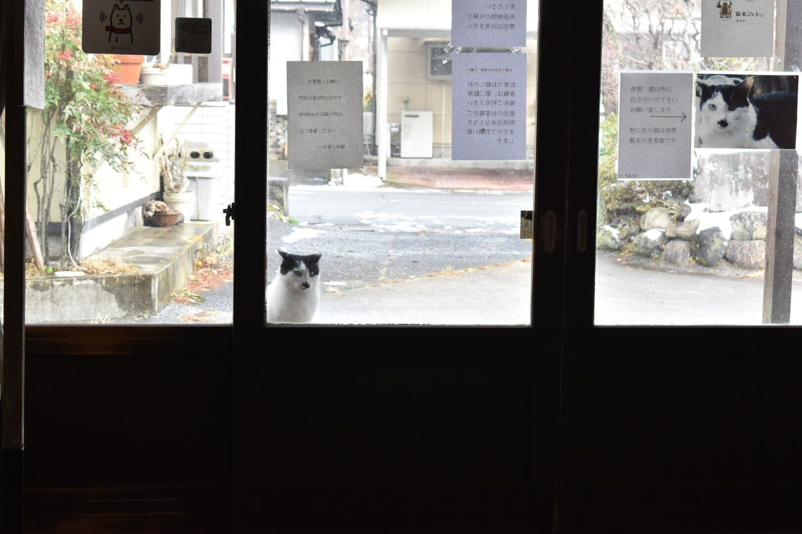 旅館の中をじっと見つめていたネコちゃん。事実を知ってから写真を見直すと、中に入りたそうな表情をしているようにも見えます。きっとこの後は無事にお家に戻ったことでしょう。
