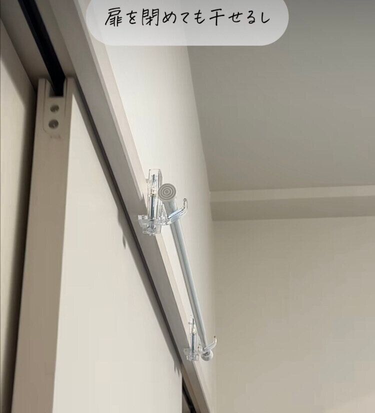 部屋干し以外にも、来客時の上着をかける場所としても活用できるので大変便利!使用していないときも、目立たず場所も取らないので、家に1ヵ所つくっておくといいですね。