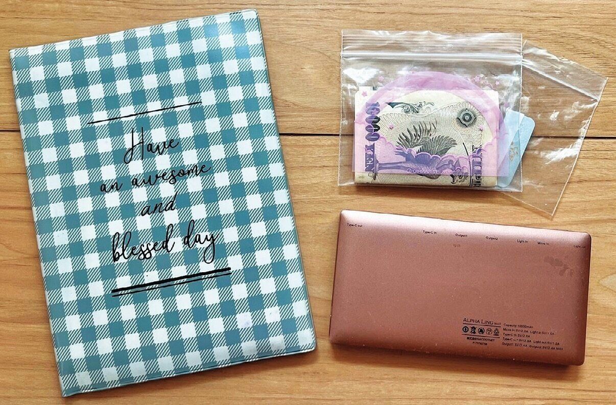 「災害時にはペイやクレカが使えなくなると思い、財布とは別に現金(1万円程度)を持ち歩くことに。また、東日本大震災のとき、スマホの充電に困った経験から、急速充電器も必ず持参。約2回分フル充電ができます」。