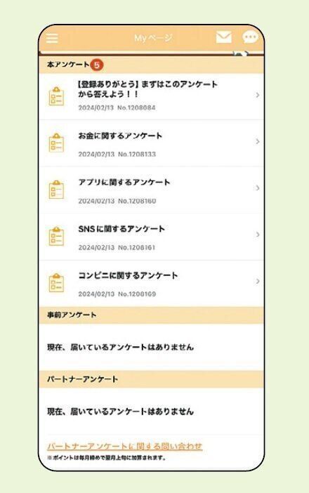 すき間時間にちょこちょこアンケートに答えて、毎月1300ポイントはたまります。このアプリを利用していることで、日常生活でも素早く答えられる決断力がついたように感じます。