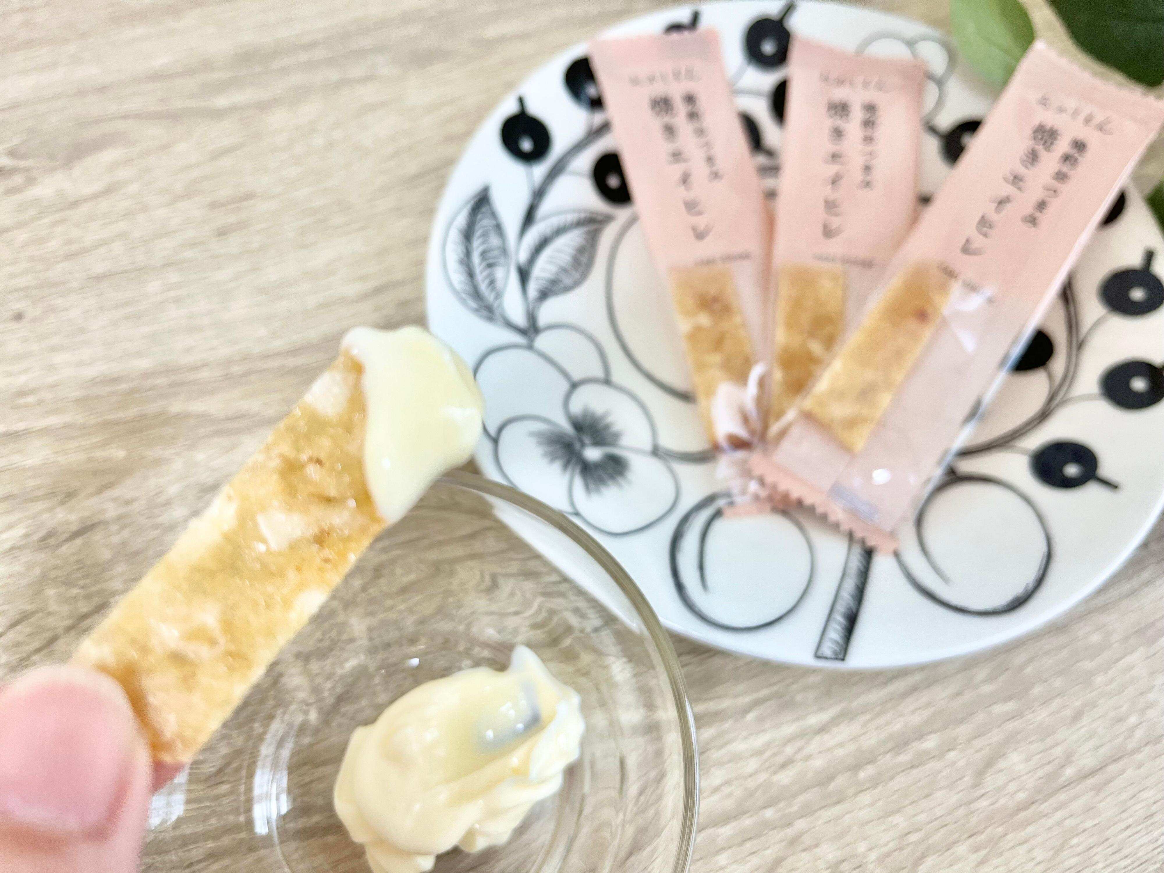 セットのマヨネーズをつけて食べたら、よりまろやかな味わいに!唐辛子のピリッと感が緩和されて、優しい味わいになるので、子どもでも食べやすくなりますよ。