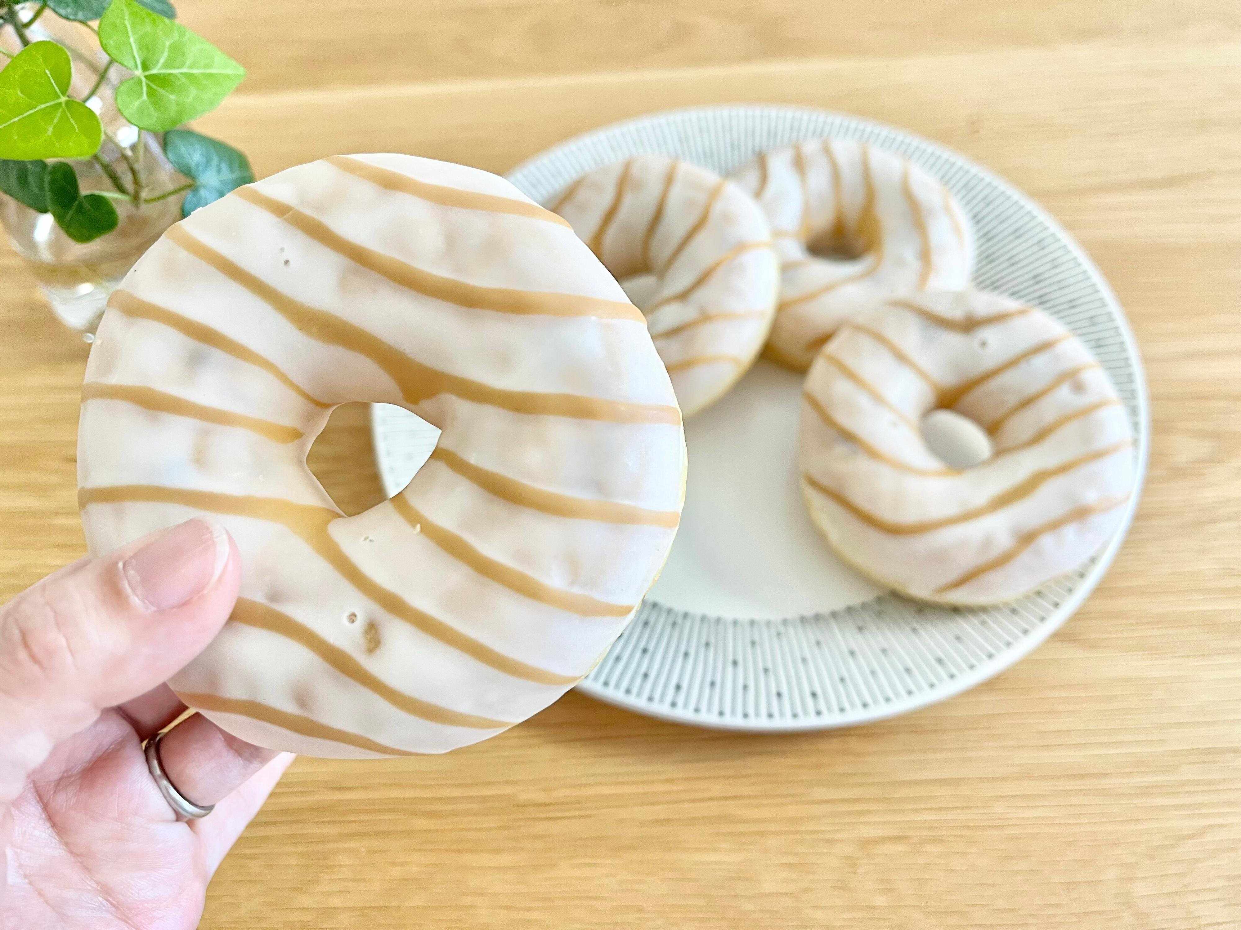 大きさは、直径約9cmあるので、おやつとして食べるには大満足のサイズ感。気になるコスパはというと、4個入りで451円で販売されているので、1個あたりわずか112円。最近はドーナッツも高騰しているので、見た目もコスパも大満足のドーナッツではないでしょうか。