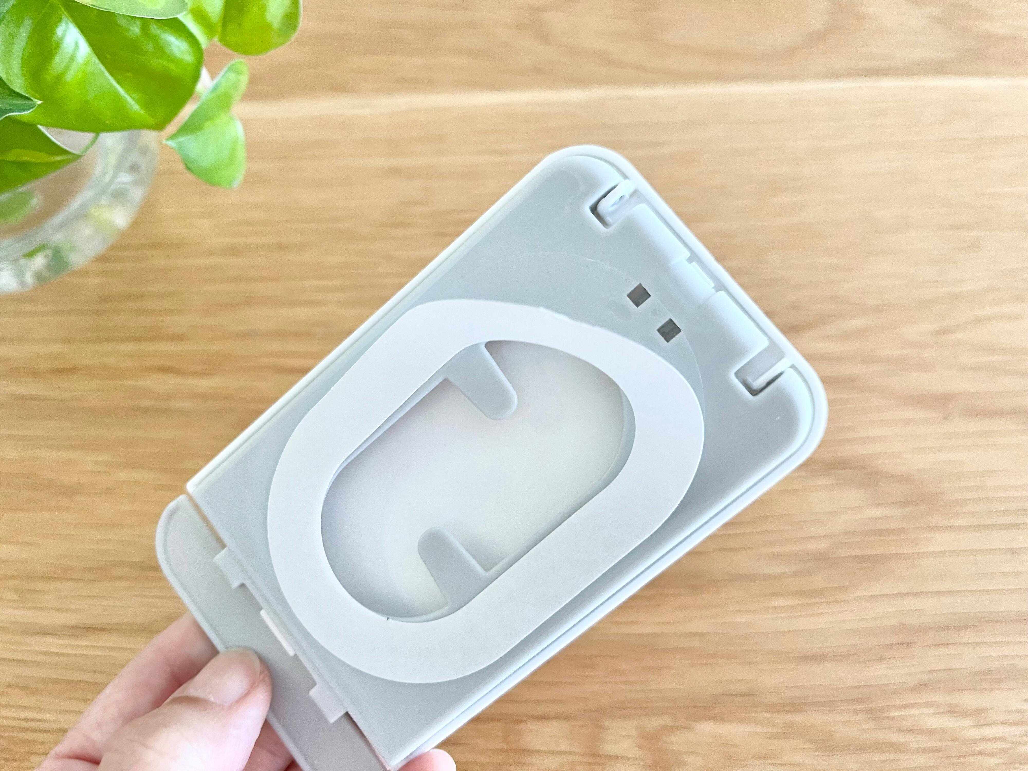 さらに、取り出し口には2本のツメが付いているので、ちゃんとウェットシートを1枚ずつ取り出しやすいデザインになっていますよ。片手で持ってワンプッシュで開けられるなんて、本当に快適に使えて便利!コレ考えた人、天才じゃないですか!?