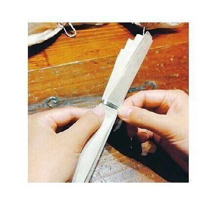2 中心部を固定し、両端から少しずつ開いていく。