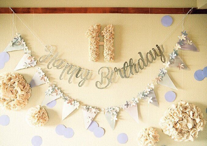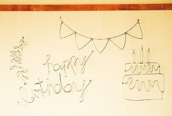 誕生日の飾り付けは、ペーパータオルやワイヤーで手作り