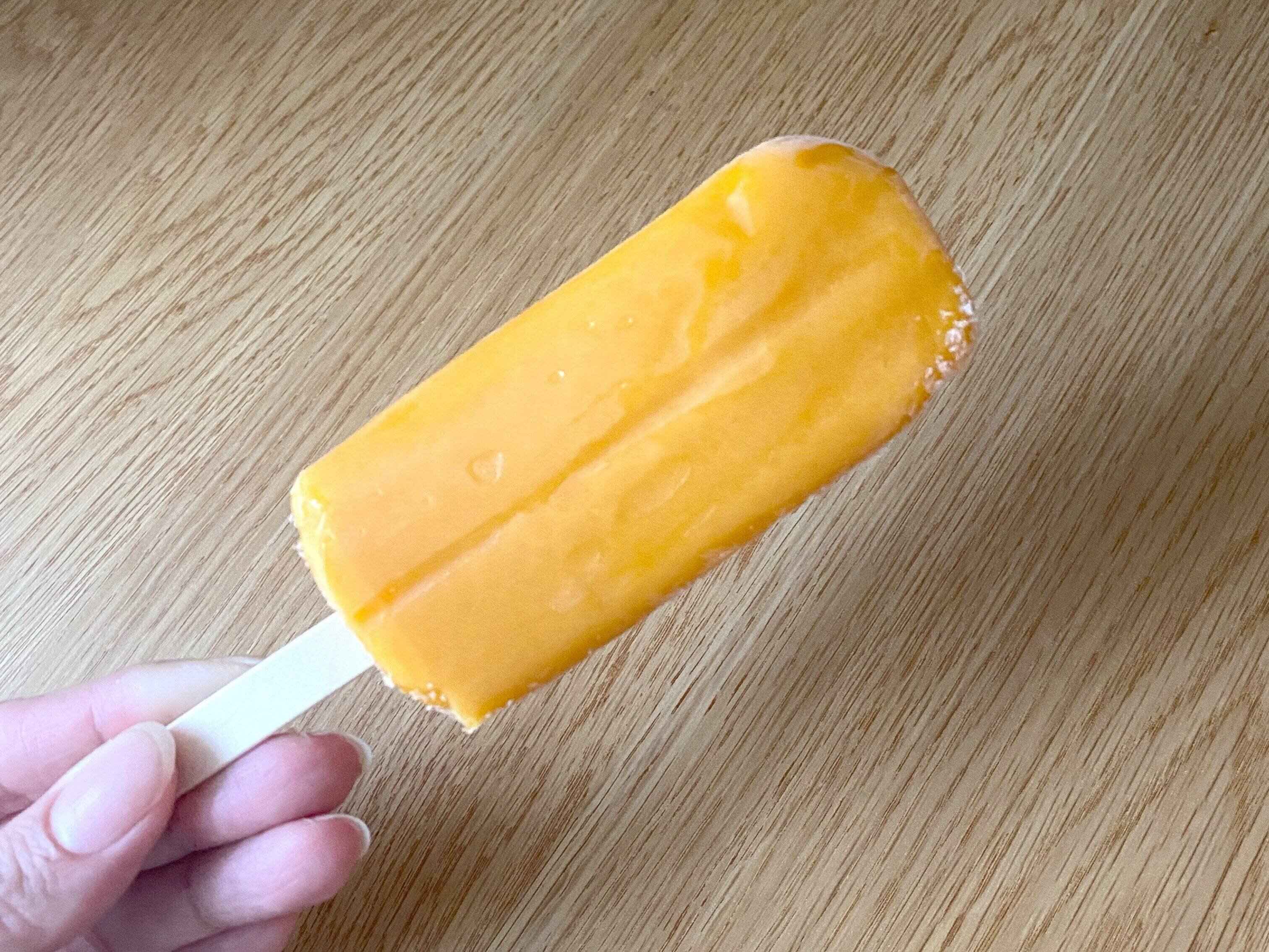 個包装を開封した瞬間にマンゴーのさわやかな香りがひろがります。食べてみるとねっとりと舌にまとわりつくような食感で、ゆっくりと溶けながらマンゴーの濃厚な味わいがひろがります。マンゴーの味が濃く自然な甘さで、まるでマンゴーの果実を食べているようなフレッシュ感。口どけもなめらかで、1本61円で食べられるとは思えない贅沢感のあるアイスです。