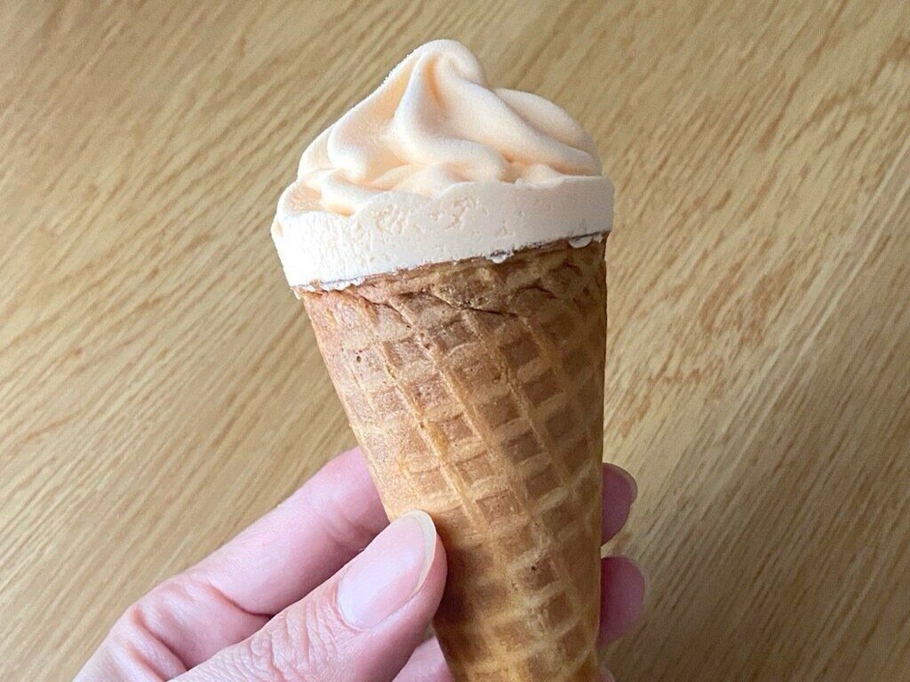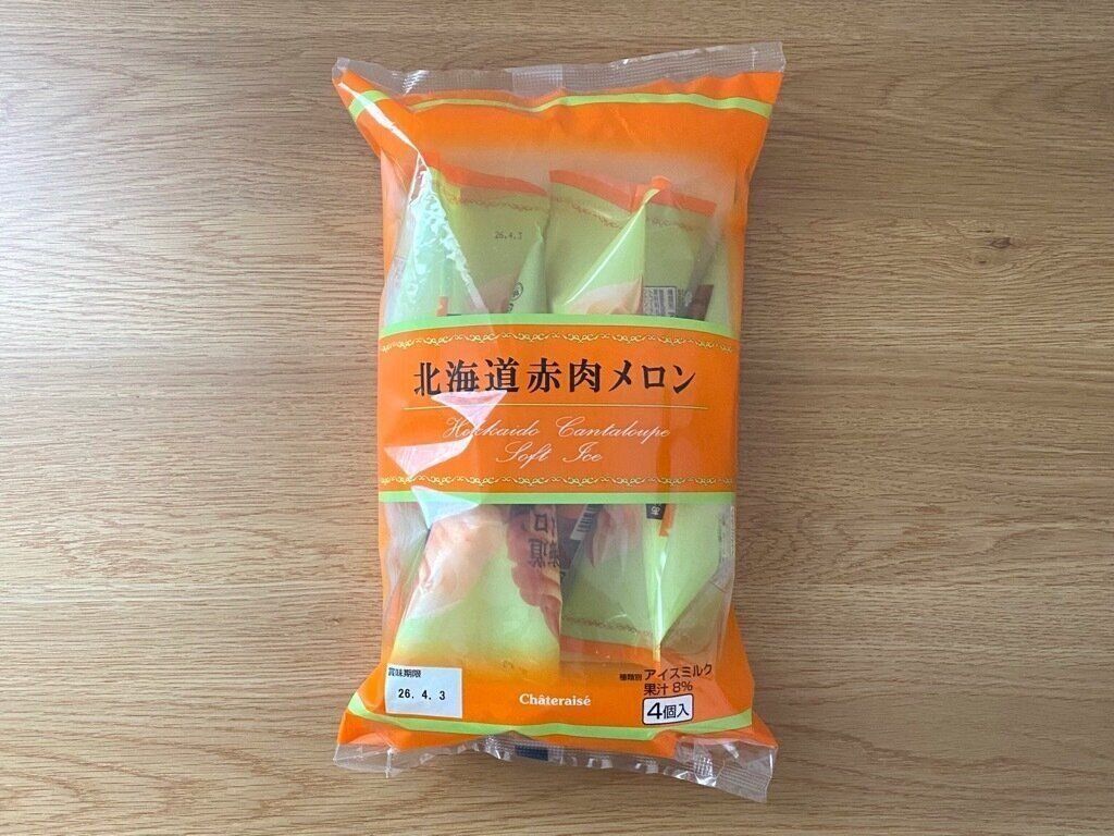こちらもシャトレーゼのアイスコーナーで販売されている「北海道赤肉メロンソフト」。北海道産の赤肉メロンとフレッシュクリームを使用したアイスと、香ばしく焼き上げた自家製シュガーコーンを合わせたソフトアイスです。