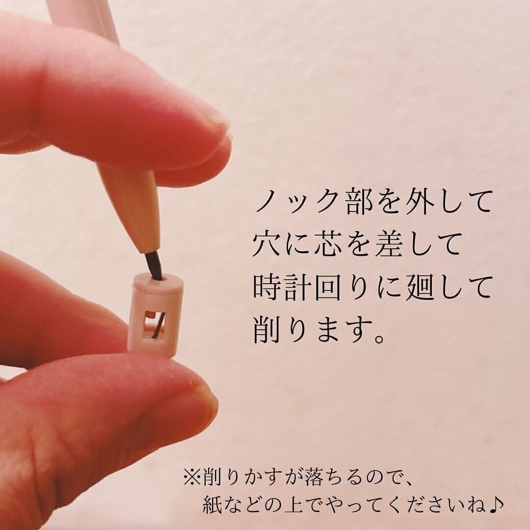 ノック部分で芯を削ることもできるので、本当に鉛筆のようですね。ただし、この刃の部分が取れやすいようなので、お子さんが使用される場合は、取り外したほうが安心とのこと。