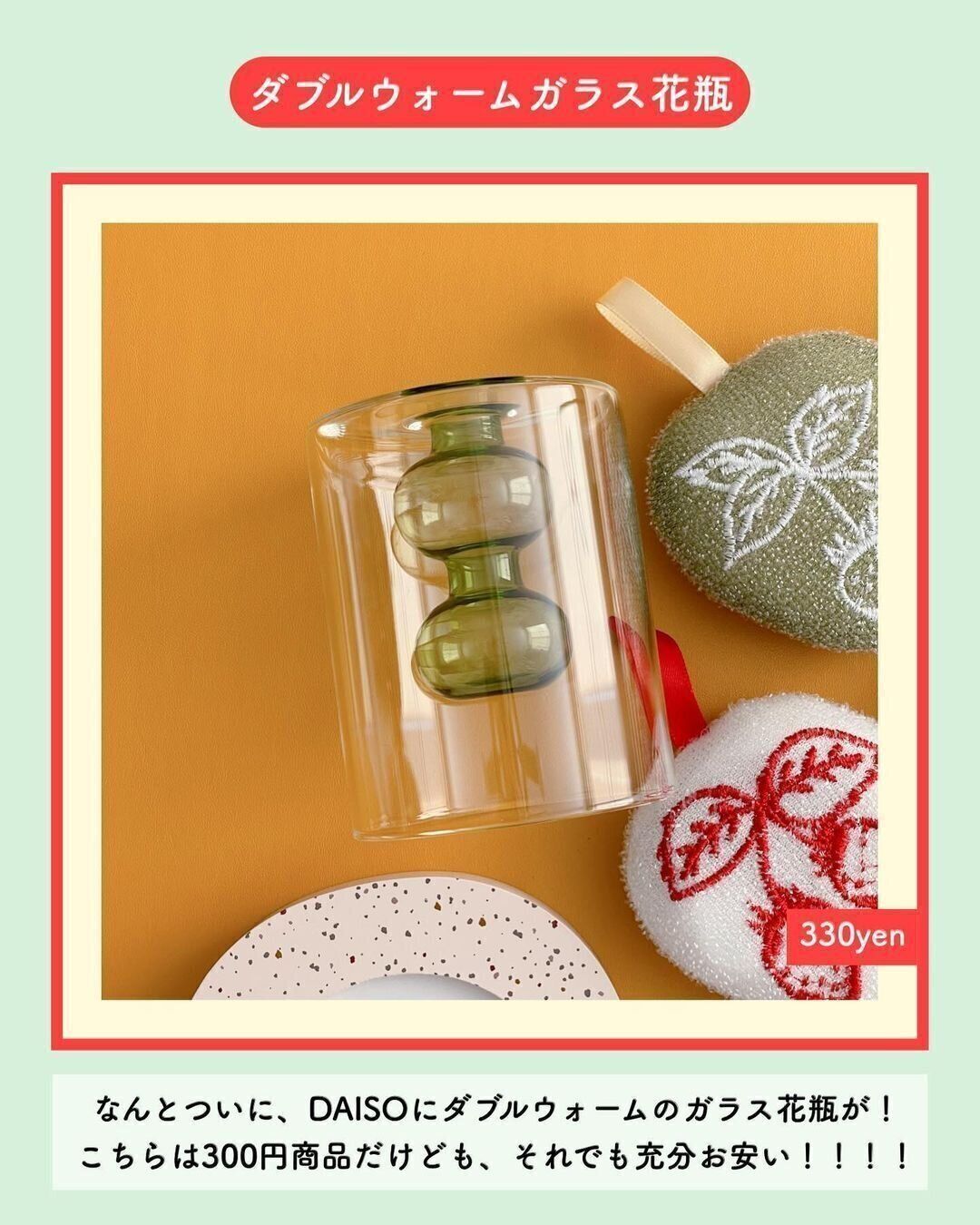 個性的な見た目のおしゃれな花瓶「ダブルウォールガラス花瓶」が、ダイソーで販売されています。値段は330円と110円以上の商品ではありますが、言われなければダイソーの商品とはわからないほどおしゃれなデザイン!