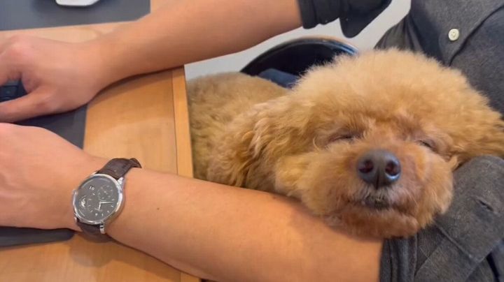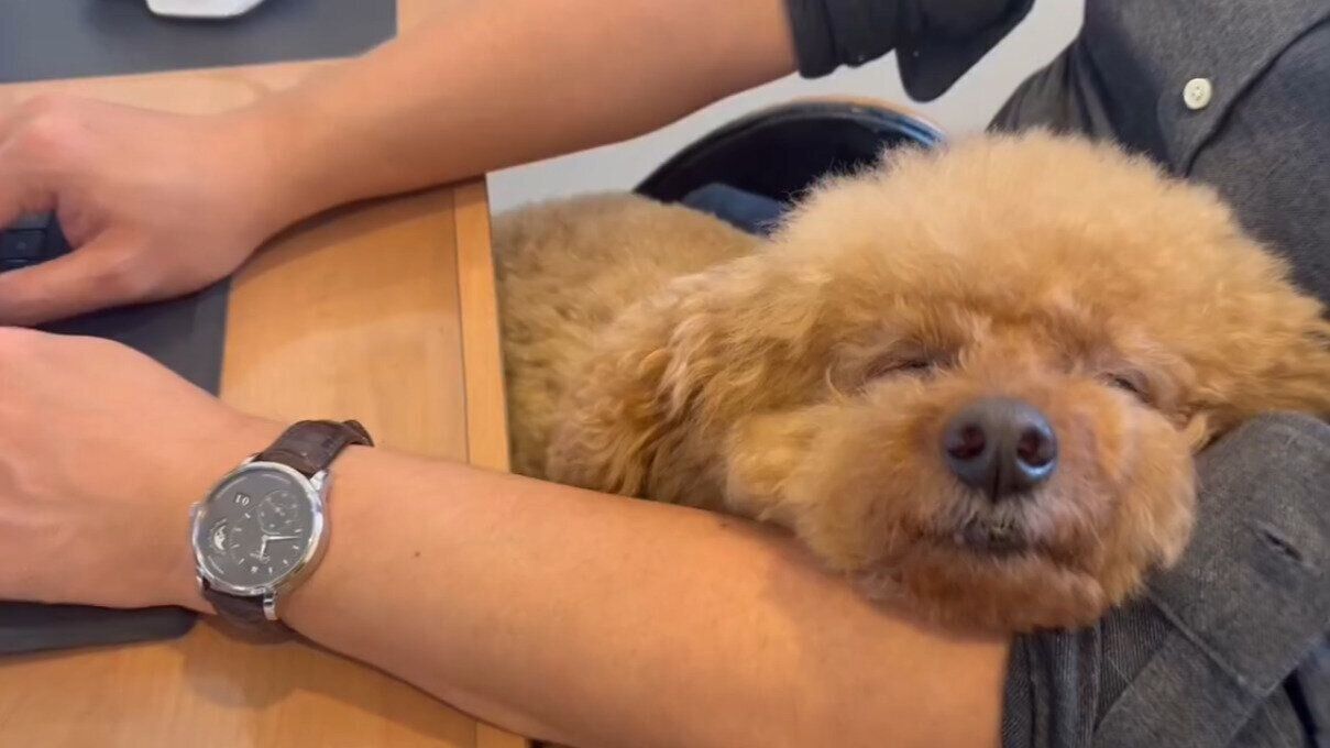 今回ご紹介するのは、飼い主さんのリモートワーク中に膝に乗ってきたワンちゃん・プーチンくんのリラックスタイムです。