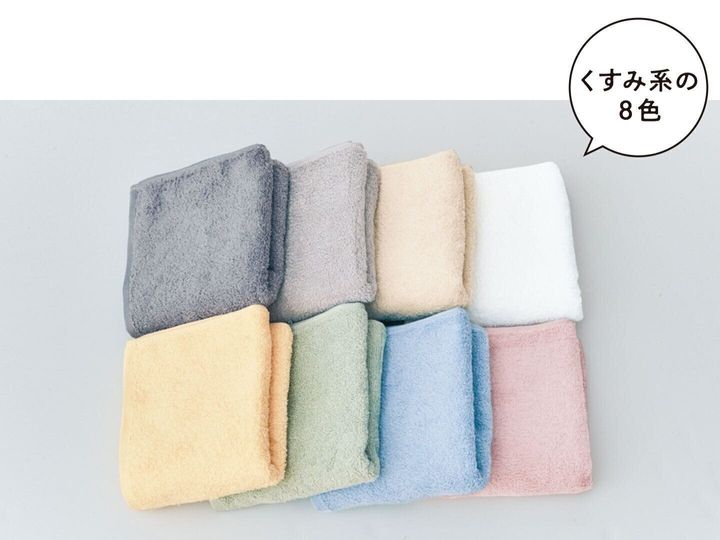 タオルは毎日使う物だから、自分好みの肌ざわりや色を選べるとうれしい。ホームコーディでは「しっかり」「やわらか」「とてもやわらか」の3つの肌ざわりを各8色で展開