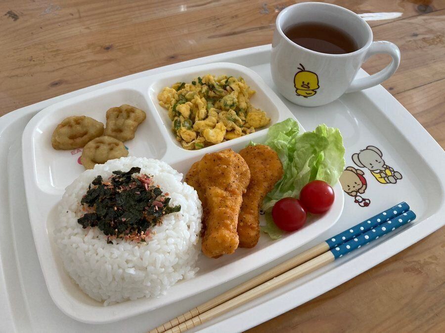 ゆうこさんの長男は現在大学1年生。当時は高校の卒業をひかえて学校がお休みだったため、毎日家でお昼ご飯を食べていたそうです。そんなときに、ゆうこさんは小さいころに使っていたプレートにのせてお昼ご飯を用意することを思いつきました。