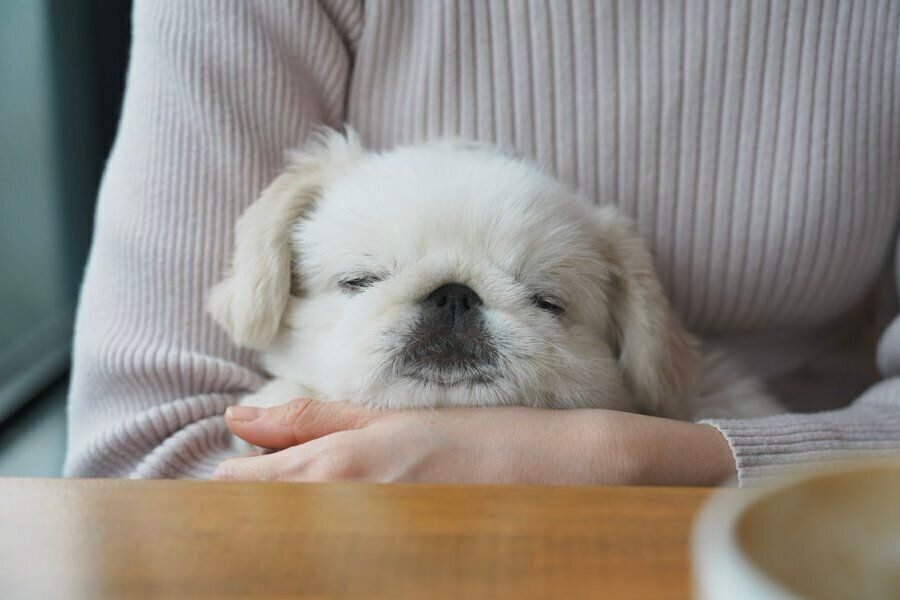 ぬん坊さん(@numbo_pekingese)はペキニーズのぬん坊くんの飼い主さん。ある日犬と入れるカフェへ行くと、ぬん坊くんがウトウトと眠くなってしまったのだとか。その表情はとっても安心し切っていて、穏やかだったそうです。