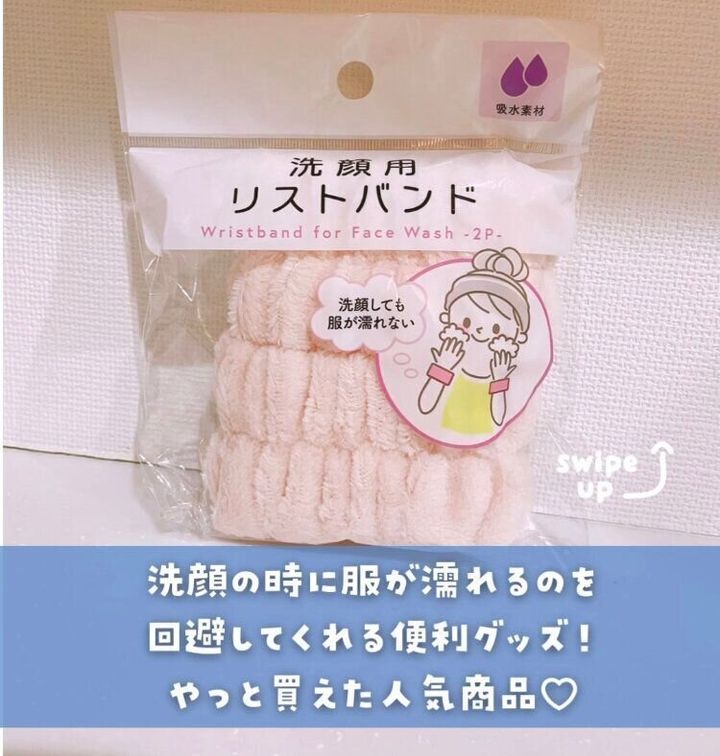 3COINSで販売されて話題なっていた商品が、なんとセリアでは110円で購入することができます!洗顔の時に、袖が濡れるのを防いでくれる「洗顔用リストバンド」(110円)は、大人だけでなく小さいお子さんの腕にもフィットするので、家族皆で使用することができます。