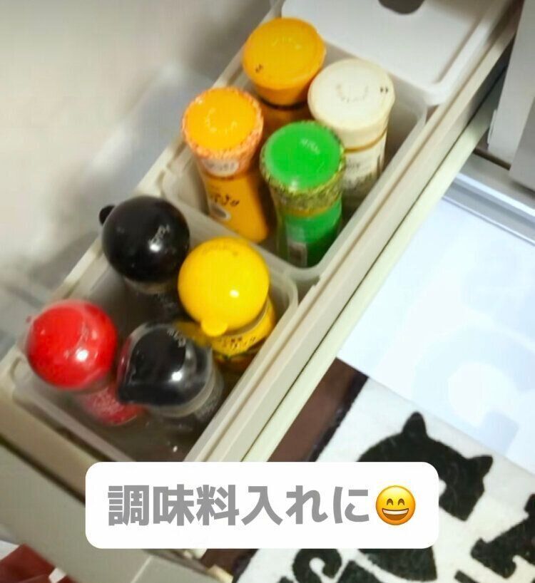 開け閉めの際に動きやすい調味料も、ふたをとったこのケースに入れて収納すればストレスフリーです。