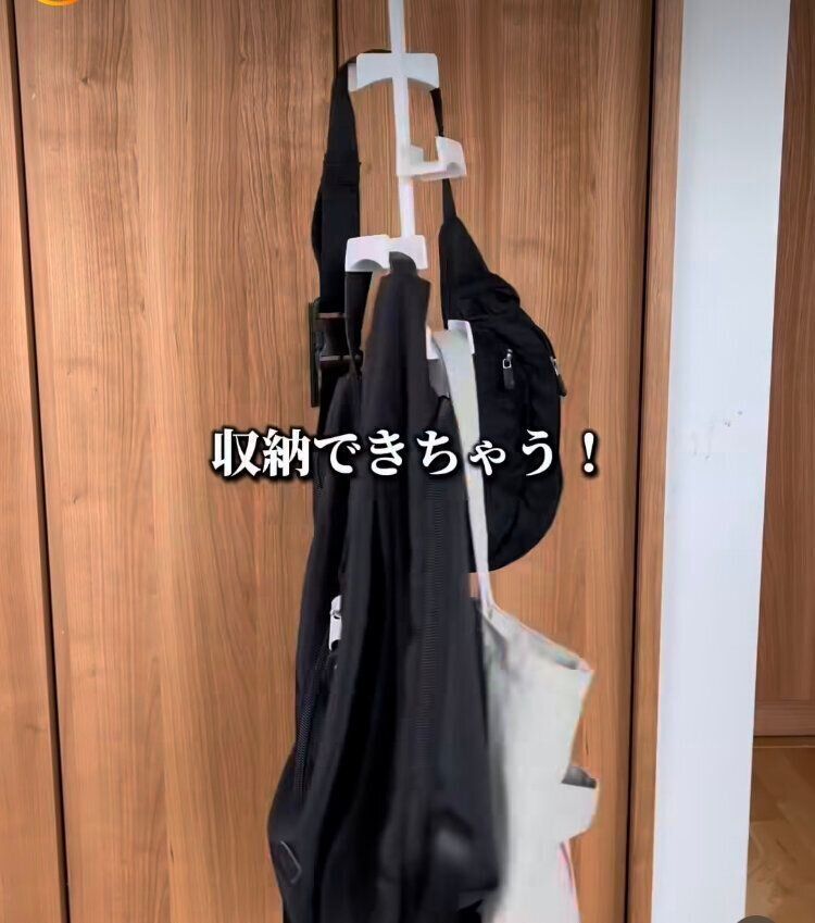 クローゼットの中などでも使用できるので、場所をとるバッグ収納も、これを使えばスペースを節約することができます。キッチンにエコバッグやビニール袋をかけて置いておくこともよさそう。カバンや袋の中に食材やお菓子を入れて保管することもできそうですね。