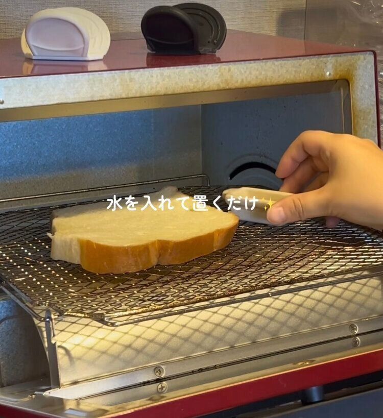 使い方もとっても簡単で、パンと一緒に水を入れたスチーム皿をトースターに入れて焼くだけ!こんなに簡単工程でふだんのパンを何倍もおいしくすることができるんですよ。朝からこんなトーストを食べることができるのはうれしいですね。投稿にあるスチーム皿は長方形ですが、現在は同じ商品ですが、丸型になっているようです。