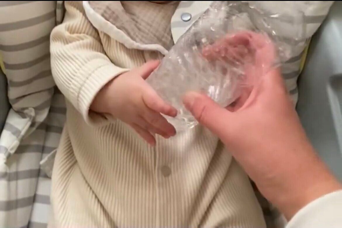 「最初は目の前で私がカシャカシャ音を立てているところをじーっと見ていました。何度かやっているうちに手を伸ばしてきたので、ペットボトルを触らせてあげたら自分でも掴もうと手をグーパーグーパーしてきました。全く掴めてないけど本人はニコニコ楽しそうでした」