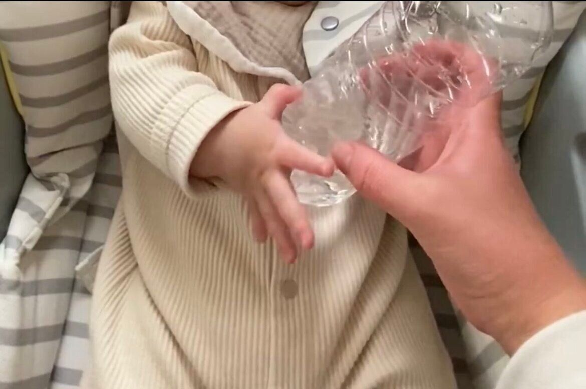 ペットボトルのカシャカシャ音が大好きで、自分でもペットボトルを掴もうとしますが……。