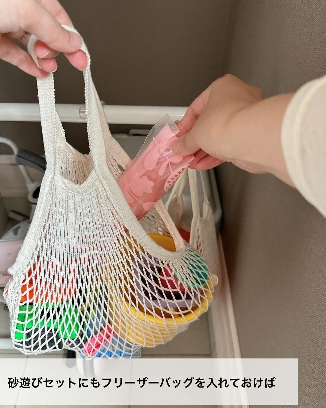 遊んだ後に砂汚れなどが気になるかたは、フリーザーバッグやビニール袋を入れておけば安心。