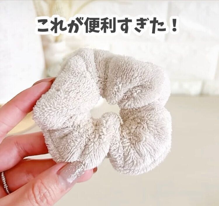 雨が降ったとき、室内や車内に入る際のぬれた傘の水滴が気になるときには「傘用吸水シュシュ」(110円)がおすすめ!こちらのシュシュは、見た目は髪の毛や腕につけるようのシュシュに見えるのですが、なんと傘につける用のシュシュなんです。