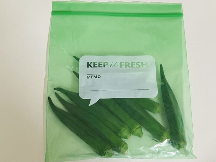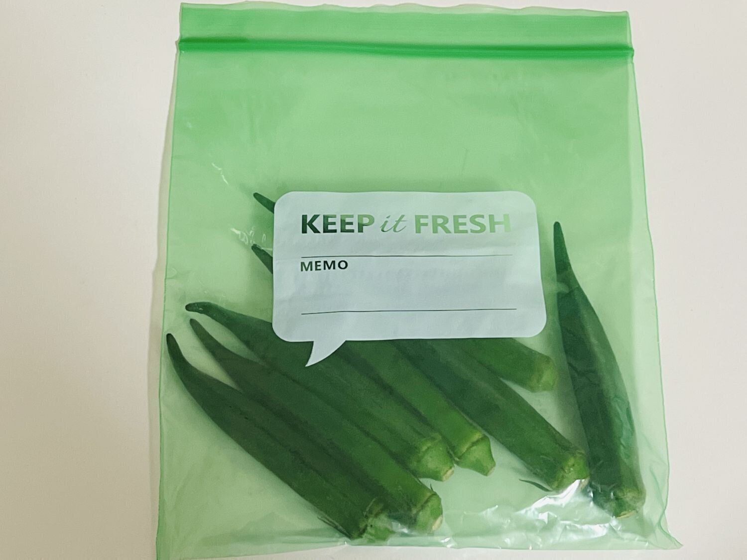 買ったら早めに調理しないとしなびたり、黒ずんでしまったりするオクラもこの「鮮度保持ストックバッグ」で鮮度を保てます。