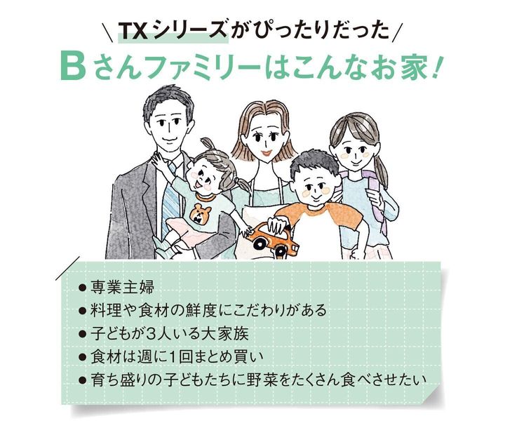 「買ってから日にちが経った葉物野菜もまだまだ元気! TXシリーズを使い続けるほど、鮮度保持機能のすごさを実感しています」