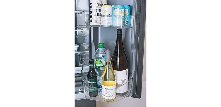 寝かして入れるとコロコロ転がる一升瓶。ドアポケットにスッキリ収まれば、取り出しやすさもアップします。もちろん2ℓペットボトルだってすっぽり!