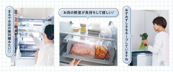 チルド内の温度変化を抑えてしっかり冷やしてくれるから、たくさん買ったお肉もいつも以上に長持ち!