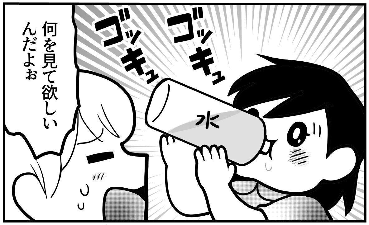 振り返ると、「ゴッキュゴッキュ」と先ほどよりも勢いよくお水を飲む娘の姿が!