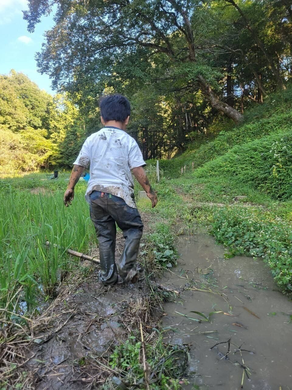 多くのかたが子ども時代に一度は憧れたであろう、水たまりでの泥遊び。い大さんのお子さんたちは、自然のなかでのびのび遊びながら多くのことを学び、きっとさらに大きく成長してくれることでしょう。