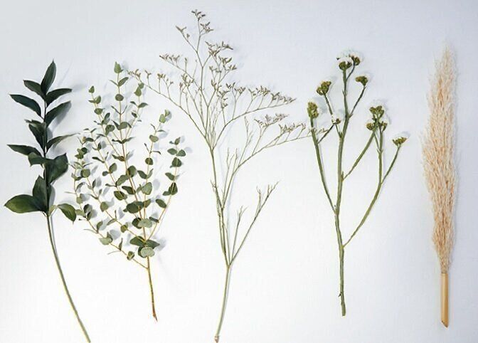 パンパス3本 ・ スターチス(ホワイトクラウン)4本 ・ スターチス(リモニウム)3本 ・ ユーカリ3本 ・ ルスカス3本