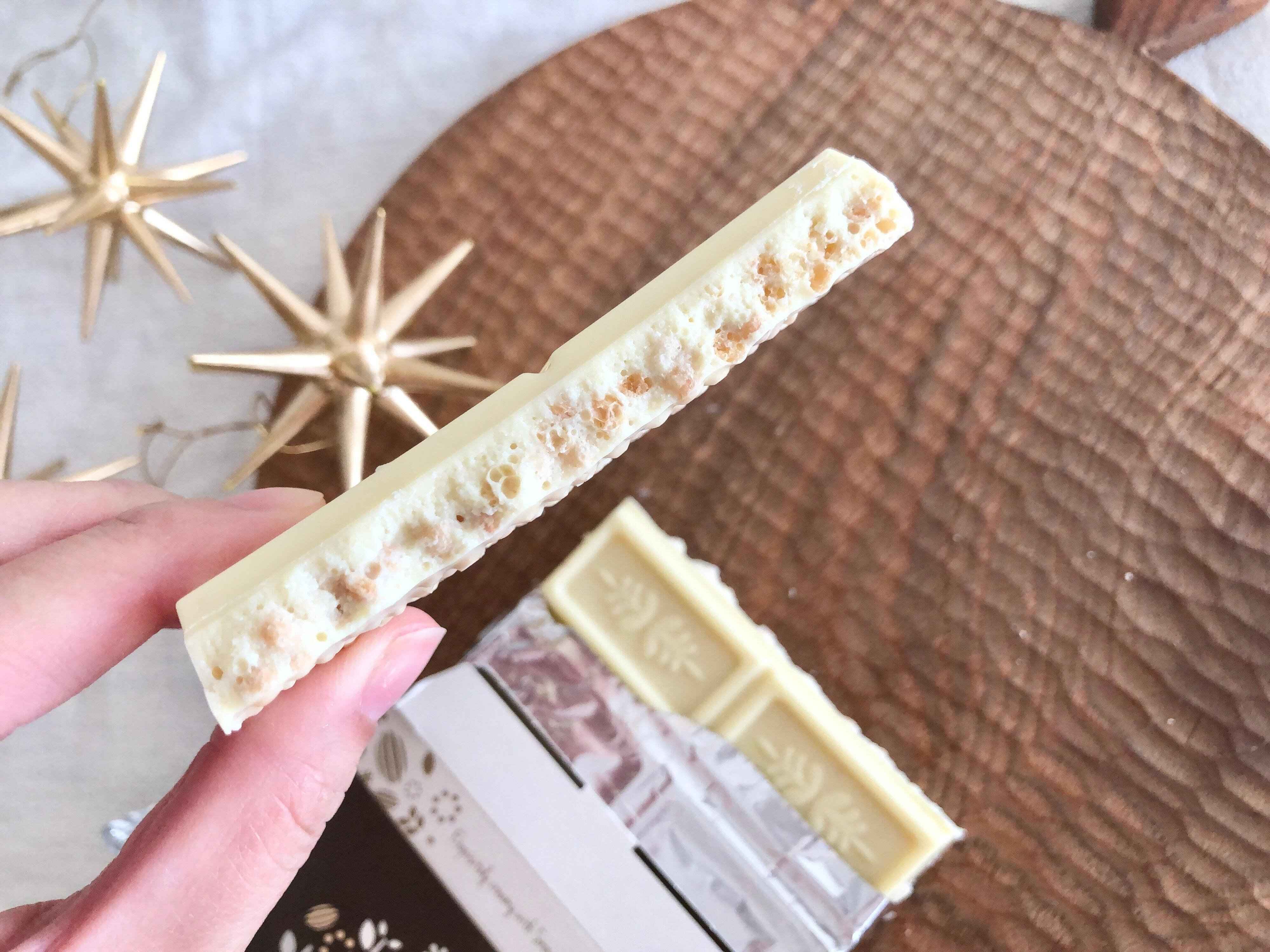 気になるお味はというと、ホワイトチョコレートは濃厚でクリーミーな味わい。そして驚くのが、パフの多さ!