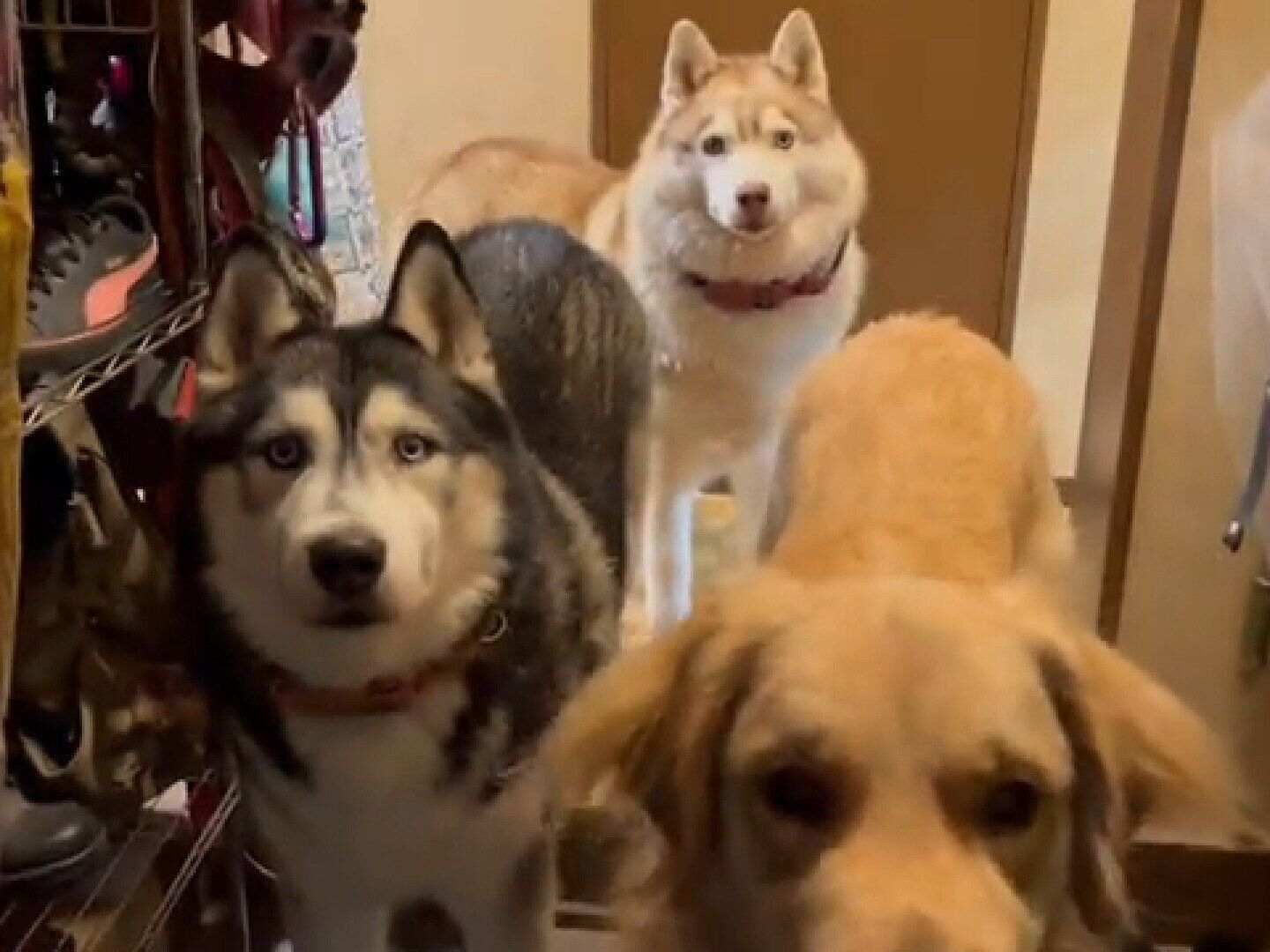 いざやさん(@nuetanp)がXに投稿した動画に8万いいねが集まっています。ゴミ捨てからもどり玄関を開けると、そこに待ち構えていたのは3頭のワンちゃんたち。みんなでいざやさんをお出迎えと思いきや、実はこの光景には理由があったようです。