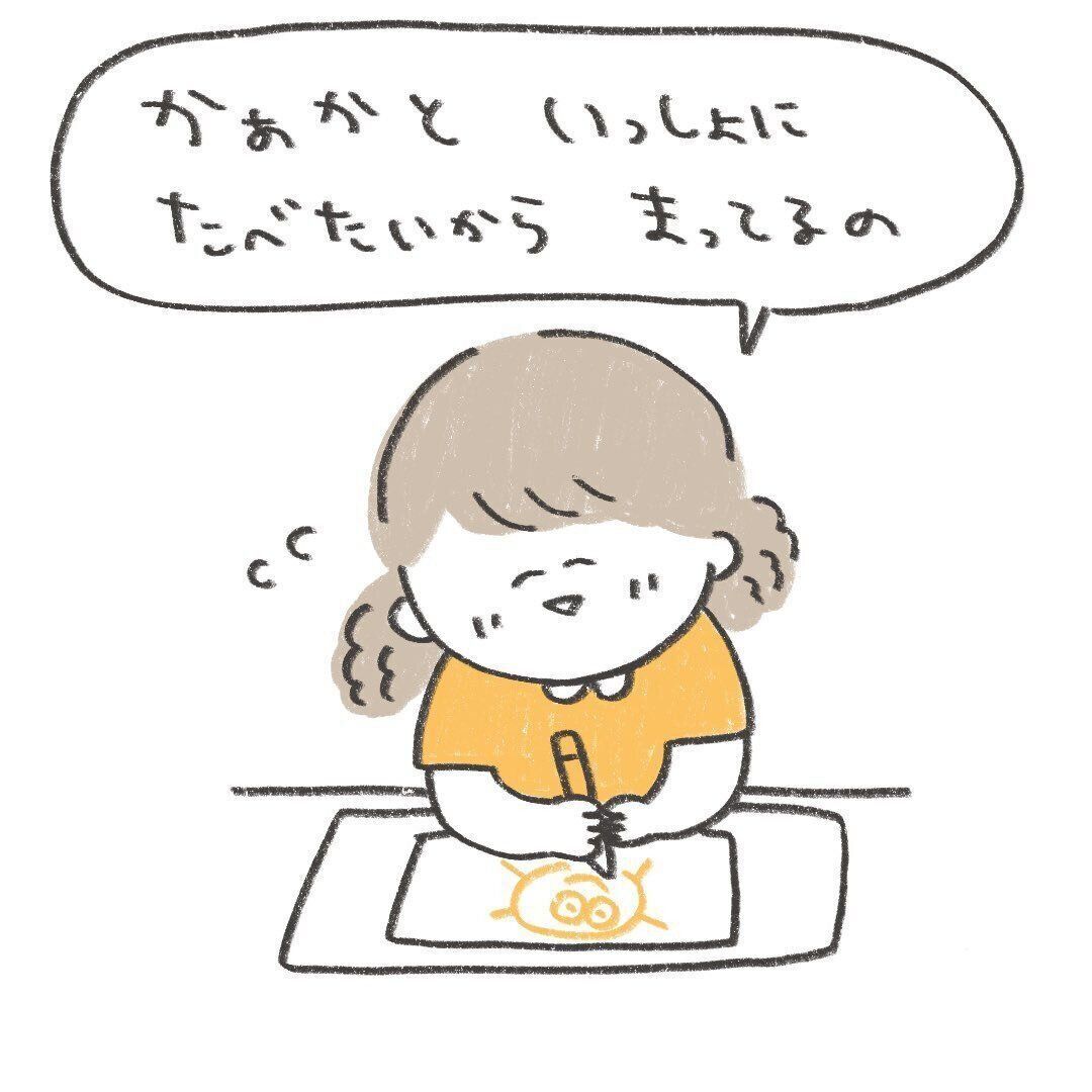 そうすると娘は「かぁかと いっしょに たべたいから まってるの」と一言。